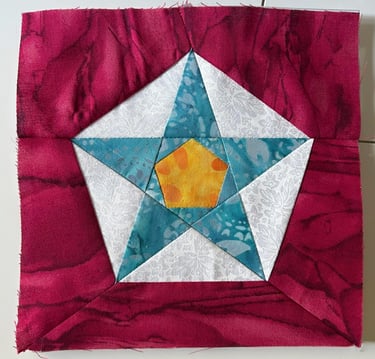 The next stop on the blog hop is Scarlett Rose. She’s designed this simple Foundation Paper Piecing 5-pointed star block with no Y Seams! She’s got additonal blocks in the same style available for purchase from her Etsy Shop.