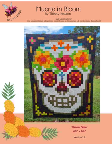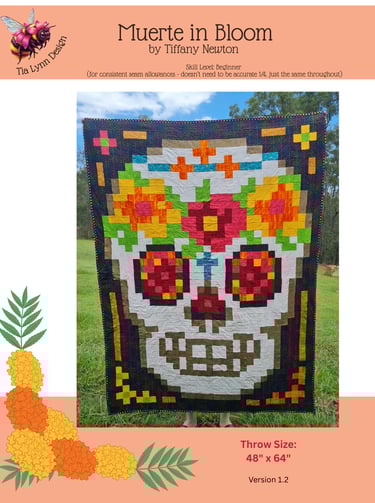 Muerte in Bloom feels like pure joy stitched into fabric. Inspired by the bright, floral energy of Día de los Muertos, this quilt is a burst of color from edge to edge. Even though it looks dramatically detailed, it’s made entirely from simple squares—making it perfect for confident beginners, scrap lovers, or anyone ready to play with color.